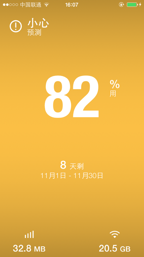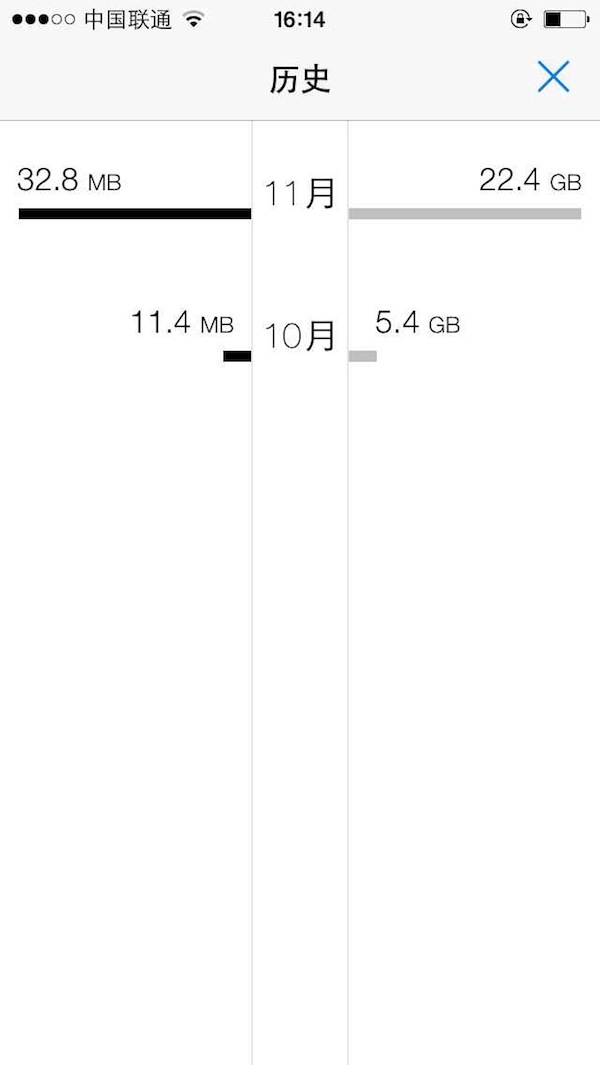 你可以非常清楚地看到每个月的流量使用情况,不需要再每个月初都去手动清除 iOS7 的流量监控数据啦。