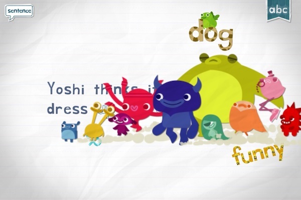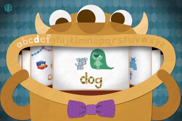 这是一个让宝宝学会拼写简单英文单词的游戏。游戏的启动界面就非常有趣,一群小怪物成群结队地抱着一大堆字母跑进屏幕,同时发出各种奇怪而可爱的声音。