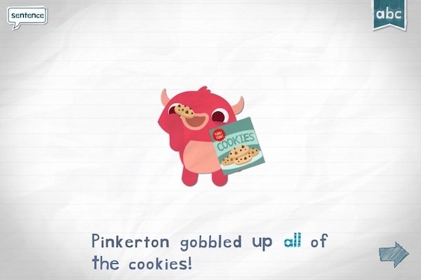 它们会搬进来含有这个单词的句子,让你或宝宝同样用填空的形式完成它们。