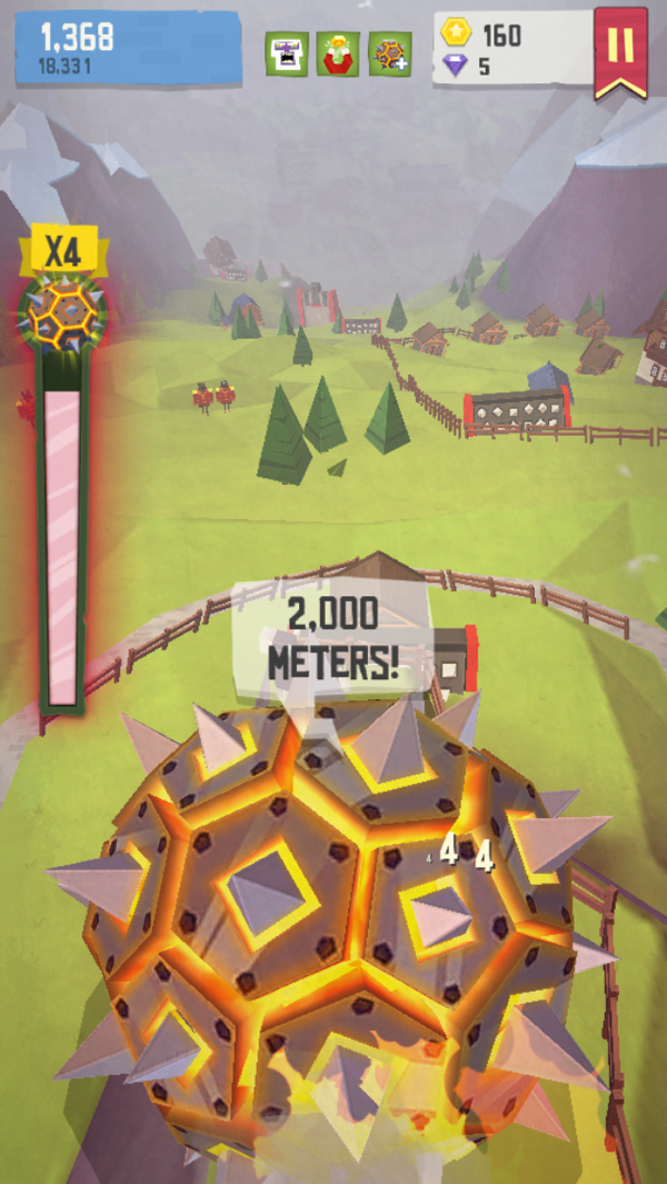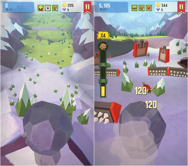 游戏的背景虽然沉重,但游戏本身玩起来却是各种的欢快!通过滚落加速,巨石先生不断的积累怒气,蓄满之后摇身一变成为 Super Giant Boulder,拥有无坚不摧的身躯,熊熊的怒火包满了长满尖刺的体表。渺小的人类你们颤抖吧!无视一切的向前辗压,人挡杀人,佛挡杀佛,阻者必死~