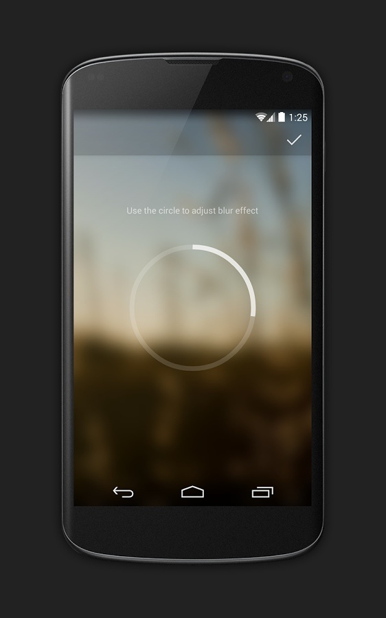 Blurone 的界面做得很唯美,上手也毫无难度。选择好图片,拖动界面中央的圆形调节杆来调整模糊程度,搞定之后可以直接设定为壁纸。