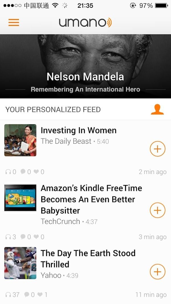 Umano 是一款新闻「朗读」应用。它每天会精选来自多家媒体的报道,然后通过真人阅读的方式向你呈现最新鲜的资讯。当然,你一定不会爱听英文新闻,但你可以让它成为自己练习听力的利器。