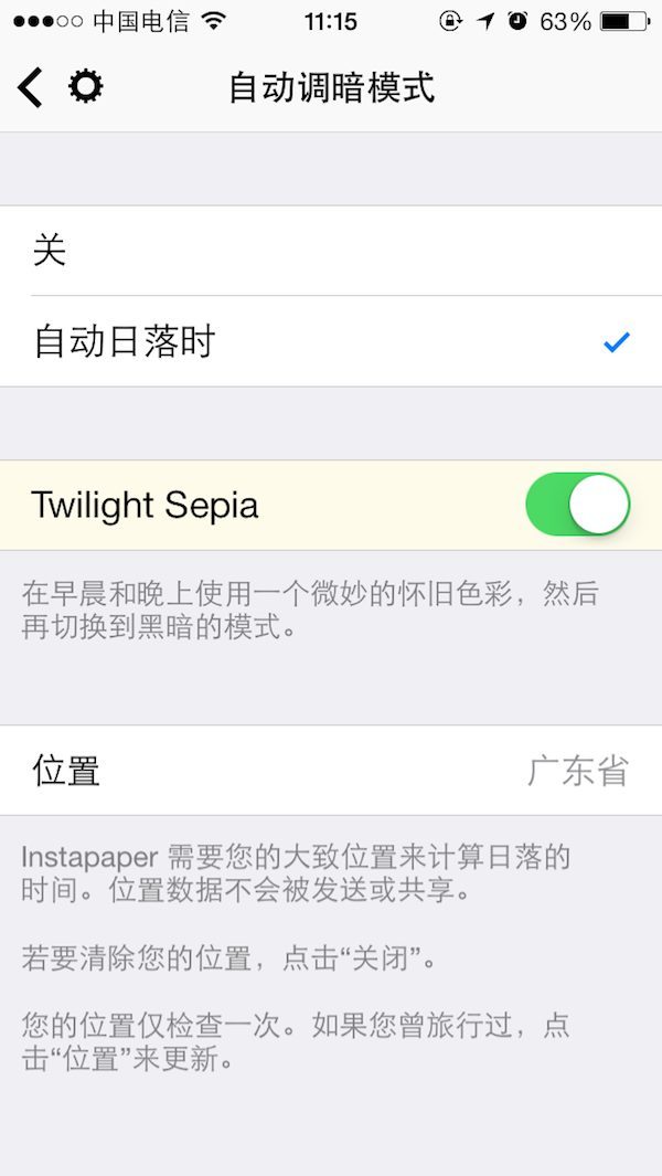 褐色和黑底白字的主题自然更适合晚间阅读,而 Instapaper 还有更绝的。