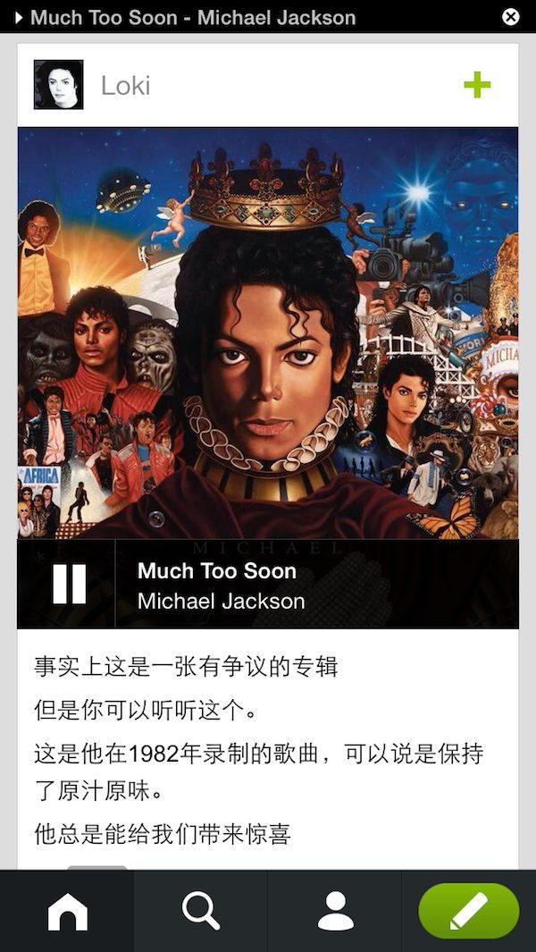 在这个界面你已经可以做很多事情。比如点击图片即可浏览大图或整个图集。或者直接播放音乐或视频。正在播放的音乐会以小黑条的形式显示在状态栏,这时你就可以边听音乐边浏览,很不错的体验。