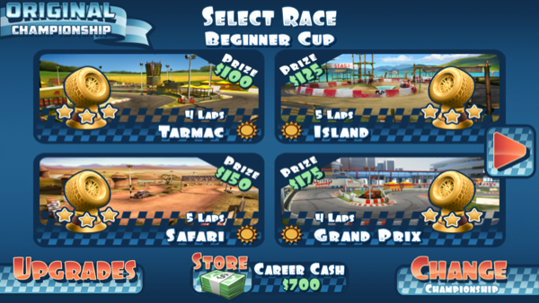 在生涯模式中磨练自己的车技,夺取赛道冠军,赢取丰厚的奖金。解锁成就并升级改装自己的小赛车,让其马力更强劲,与好友在多人模式中一决高下。