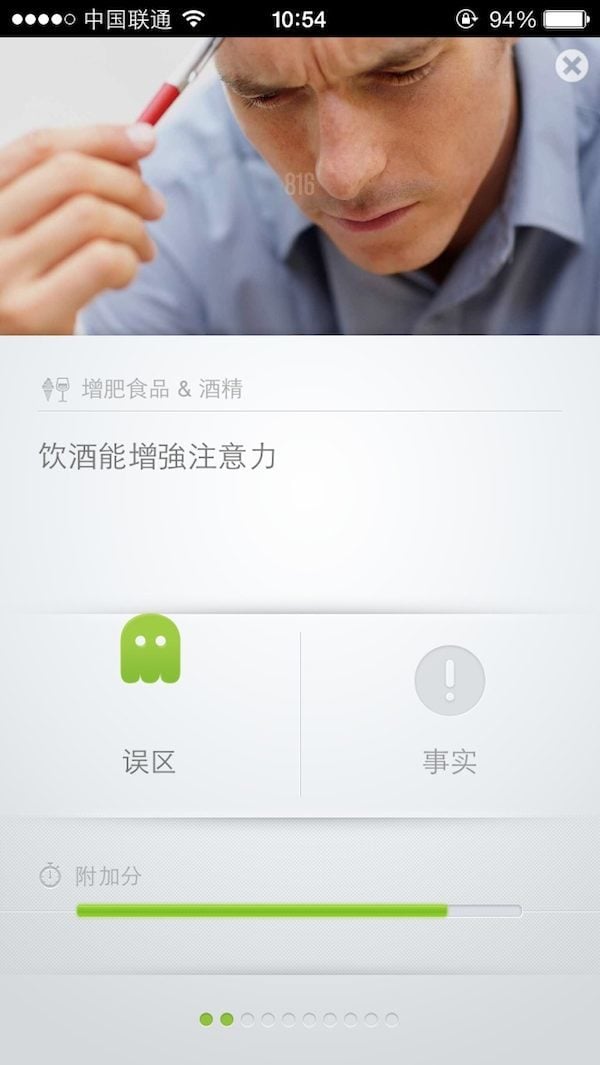 Nutrition Quiz PRO 是知名运动和健康类应用公司 Runtastic 推出的营养指南。(其实它还有个让人汗颜的中文名字叫做“营养问答软件” )NQ PRO 会以闯关的提出一些健康类的命题,你只需要判断正误即可。