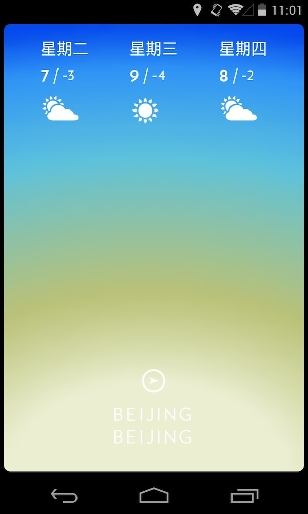从屏幕顶部向下划动,可以预览未来三天的天气。