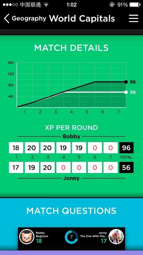 QuizUp 是一个问答社区,选择自己擅长的领域之后,QuizUp 就会自动为你寻找全球各个角落的玩家,通过七个问题的 PK 一决高下。