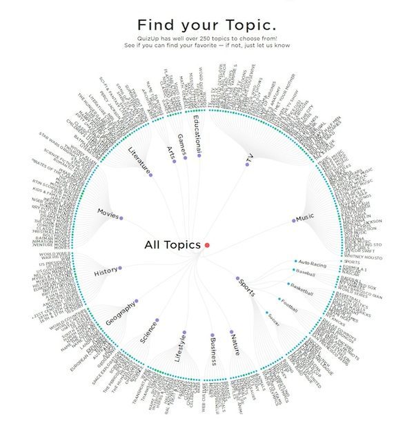 最后,附上一张 QuizUp 囊括的所有知识领域图。从《生活大爆炸》到 NBA,再到英国历史,无所不包。