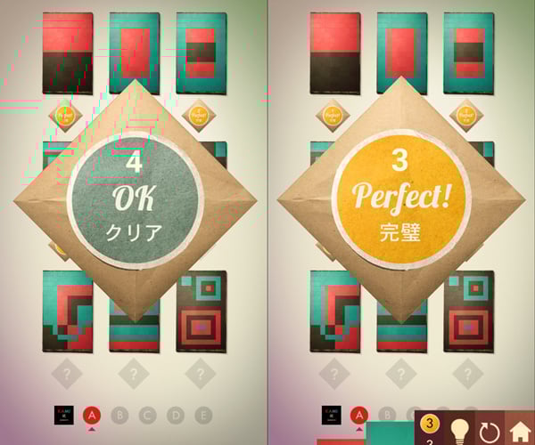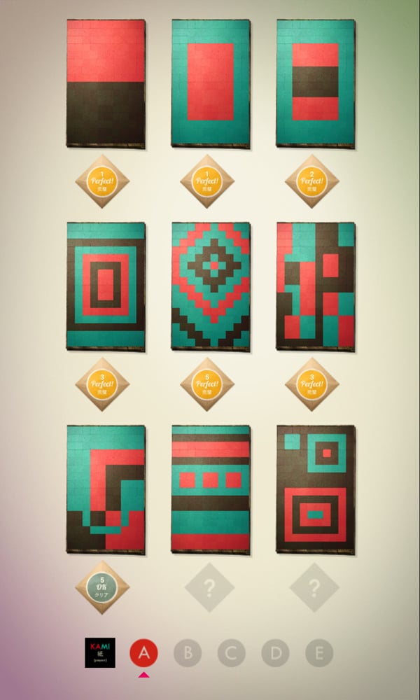 与同类益智游戏一样,KAMI 的关卡难度也逐级递增。当你闯过 A、B、C 来到 D 与 E 等级时,你会感到自个的智商不够用了,虐你没商量!