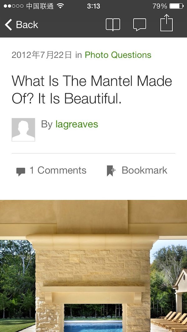 Houzz 会在主页随机为你精选一些养眼的装修范例。向上滑动手指可以查看关于这套家居的详细信息,以及摄影师的其他影集。