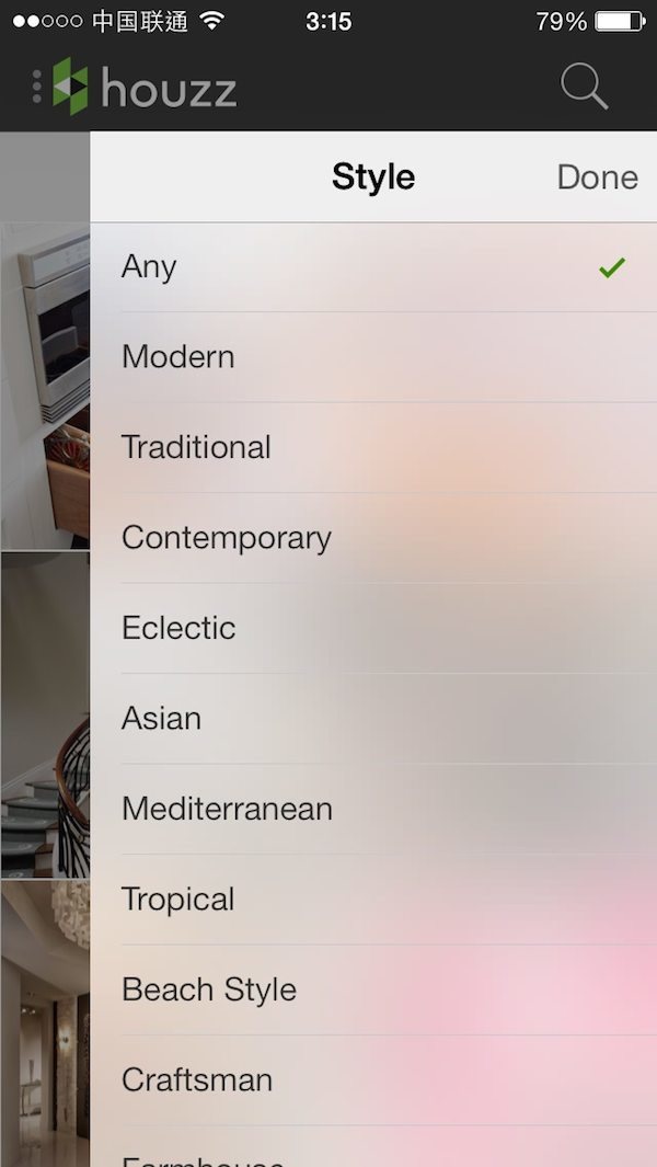 不过,对于中国用户来说,Houzz 的最大价值莫过于提供多种风格的家居搭配范例,用于在装修时参考。按功能区间分类,Houzz 提供厨房、卫生间、卧室、客厅、餐厅等区域的搭配范例。