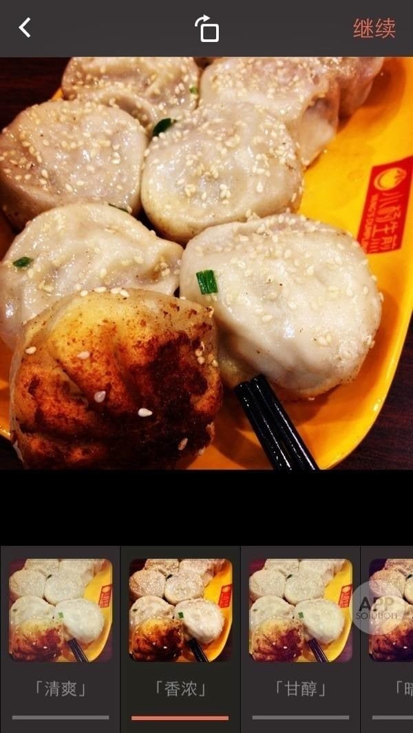 加入他们吧!无需登录,打开相机,拍下你面前的美食,或是从图库里挑出念念不忘的那张。食色在滤镜数量上很克制,质量则相当不错,可以很好搭配对应的场景。看,「香浓」搭配生煎,刚刚好!