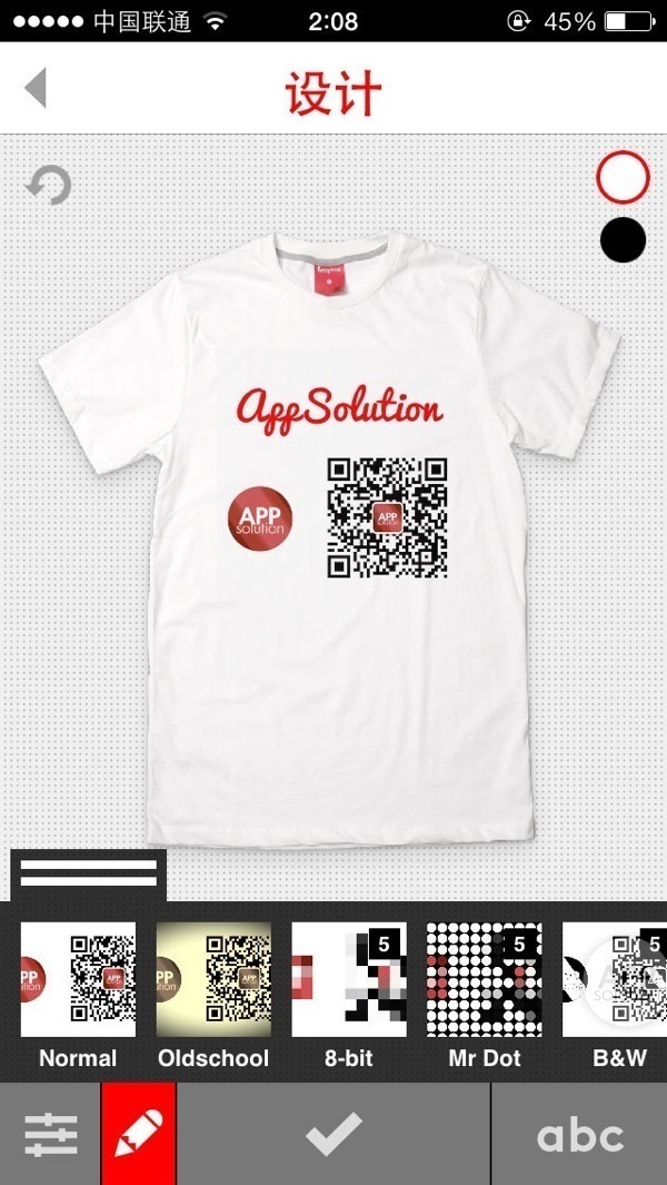 接着插入图片,通过双指捏合来缩放与旋转。也别忘了看看 Snaptee 提供的几种不错的滤镜,包括像素、Mr Dot 等专为 T 恤设计的风格。