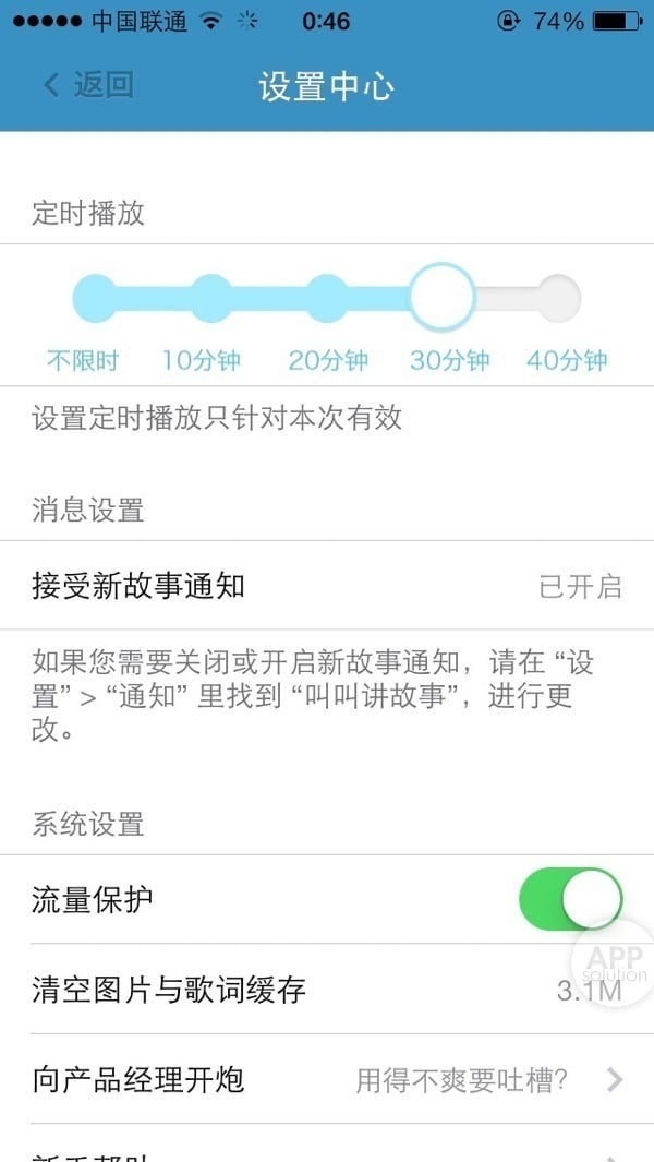 宝宝睡着了,故事还一直放着,怎么办呢?没问题,叫叫讲故事贴心地提供了定时播放功能。