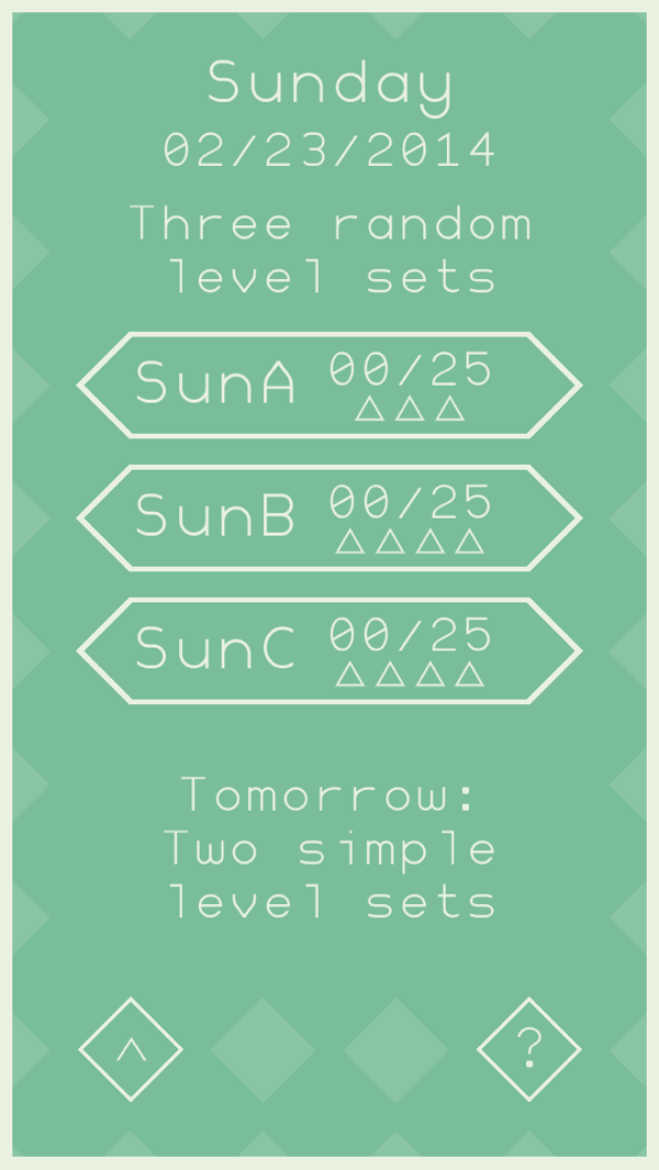 LYNE 的拥有上百个游戏关卡,当你把 Stes A、B 通关过后,即可解锁 DAILY(每日模式),开发者 Thomas Bowker 每天都会在此为其新增丰富的游戏内容,每天都是一个新的挑战。