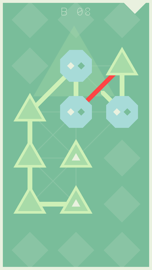 在初始的几个关卡中游戏的流程简单畅快,依样画葫芦就可通关。但当最具搅局机制的「六棱形」粉墨登场后,游戏变得复杂化,也更考验我们的逻辑思考能力,稍不留神便会把你困于其中,折磨死人……