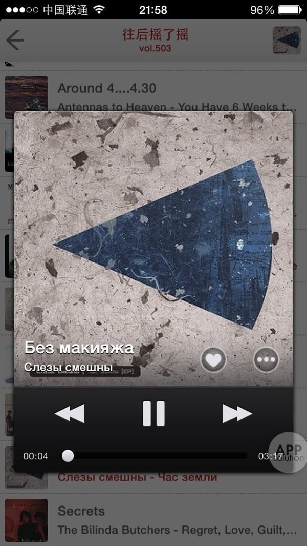 专辑封面和控制按钮组成的播放界面非常简单。不过,遇到喜欢的曲目,你可能对它添加收藏(需要先登录),或是将它分享到微博、微信、豆瓣等社交平台。