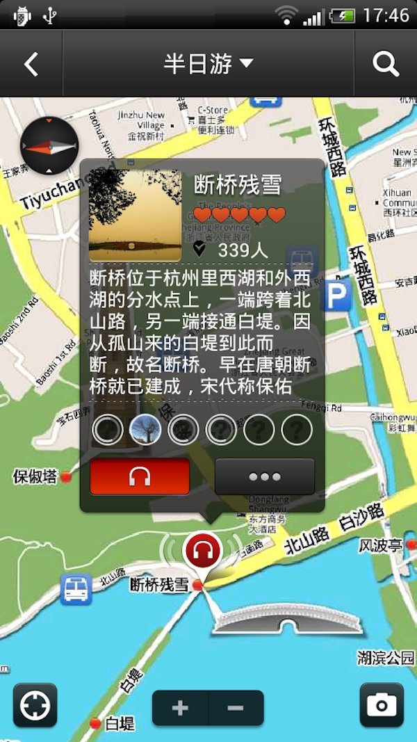 旅游手册倒是个传统的解决方案,然而手机时代,当然先要利用这个触手可及的轻便设备。「景点通」就是一款充分利用 Android 手机的旅游应用。相较于一些著名旅游手册以地区为单位,「景点通」的单位是景区,如「西湖」、「故宫」等。应用中已经内置了大量制作好的景区信息下载,每一个都是一本旅游手册。
