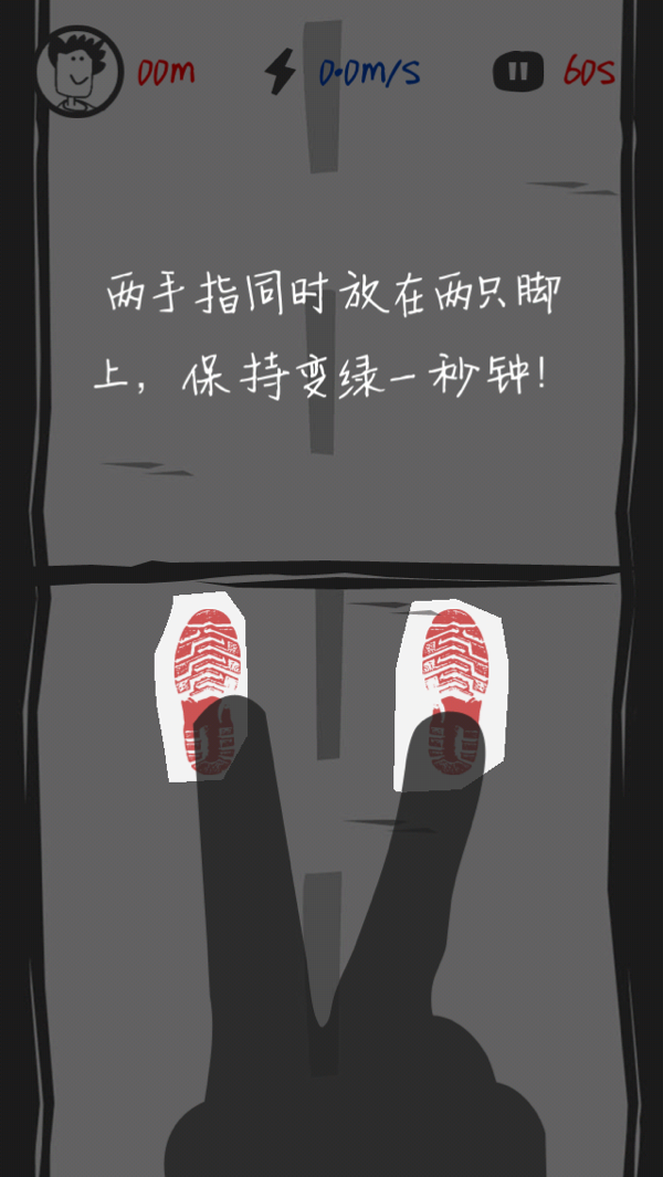 正如其名 — 指尖跑酷,游戏中我们需要用手指作为两条腿,在屏幕上交替滑动,以此向前「奔跑」。手越快者,跑动的距离越长。