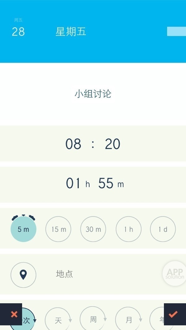 在新建事件时,选择时间的方式非常讨人喜欢:按住手指不放,滑动到对应的时间点即可,比转动指针神马的高效多了。
