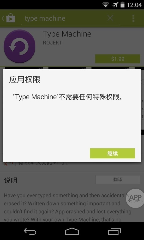 Type Machine 大小 463 KB,适用于 Android 4+ 的设备,售价 $1.99。