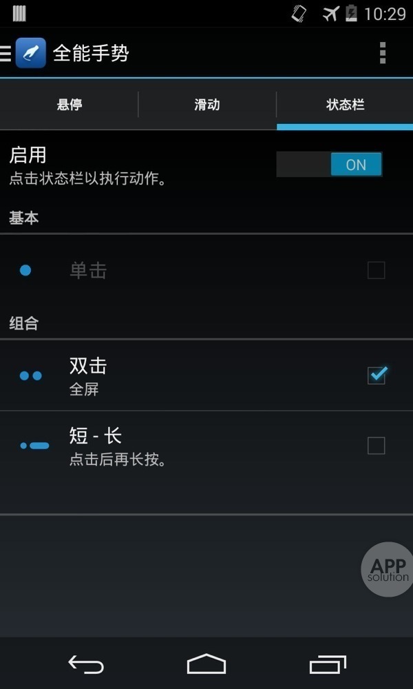 第二是状态栏点击,通过单击、双击或点击后长按任务栏来激活动作。