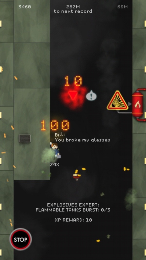 游戏的玩法简单易上手,只需轻触屏幕即可完成攀爬跳跃。逃亡的过程中会有电梯残体、火球、巨石不断下落,稍不留神便会被撞击而亡。而两侧的电梯墙体,也处处存在着致命的危险,我们给细心留意每一处落脚点,不可随意攀爬跳跃。