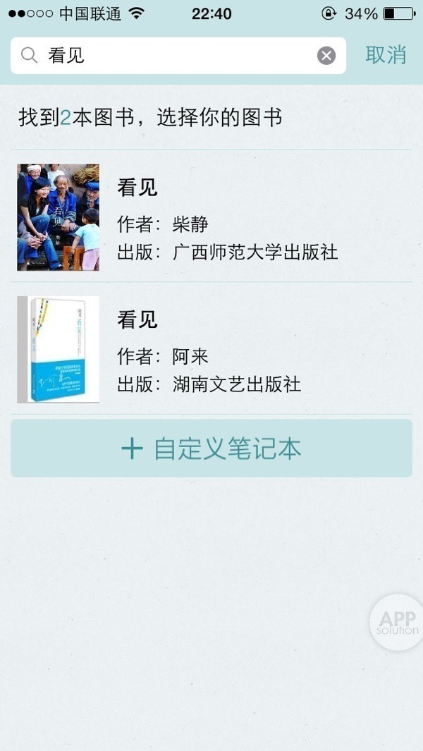 每当开始读一本书,就来这里搜一下书名,即可在书库中找到。当然,你也可以自定义笔记本的名称。