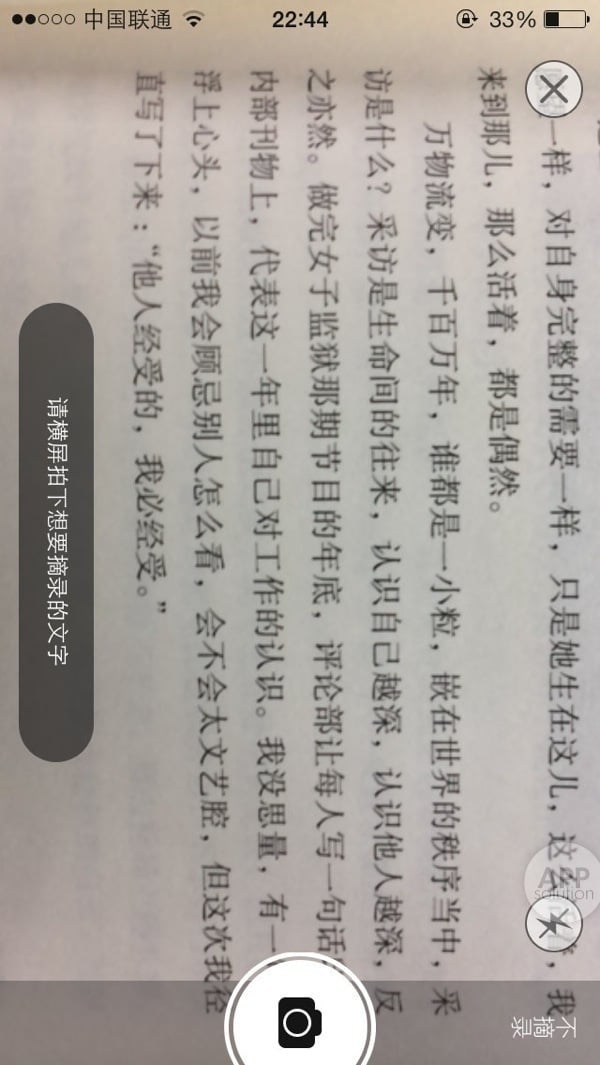 当读到让自己感动的句子,就把摄像头对准相应的段落,按下快门。