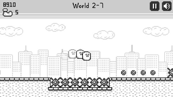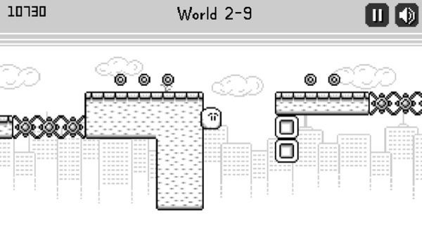 你无需控制 Jack 的移动,唯一要做的是点触跳跃避开危险,如果遇到障碍物(墙壁、砖块等),Jack 就会反向移动,我们需要充分的利用这一机制,在关卡中尽可能多的收集金币获取积分。