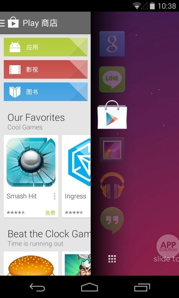 Cover 的强大能力不仅仅发挥在锁屏。在任意应用中,从屏幕右上方的边缘向下滑动,即可调出快速启动栏,同样是六个你常用的 app。滑动到需要启动的 app 上,松开手指即可。