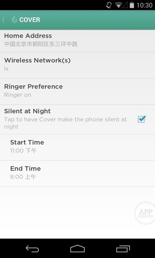 除此之外,你还可以让 Cover 通过识别不同的无线局域网来调用不同的情景模式。对了,Cover 还支持驾车模式,这一模式是通过检测位置的快速变化来启动的。