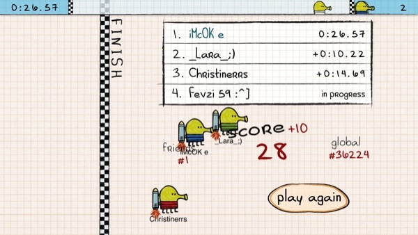 人红是非多!这话放在 Flappy Bird 身上一点都不为过。这不,拥有千万下载量的老大哥 Doodle Jump(涂鸦跳跃)也坐不住了,在 Doodle Jump 五周年来临之际,开放商 Lima Sky 为其制作了一款纪念版小游戏 —— Flappy Doodle,哦…不对,是叫 Doodle Jump Race。