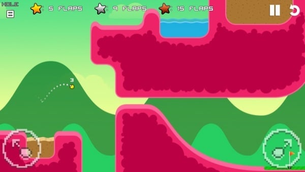 游戏中我们不再是挥杆击球,控制高尔夫球的走向。而是点触虚拟按键直接推动高尔夫球的行进,仿佛一只鸟儿飞扬在球场上。