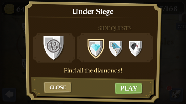 每一个关卡通关过后,都会解锁额外的挑战任务,如收集钻石、躲避毒金币和捕获小精灵等,每一次成功的完成挑战任务都获得一个盾牌奖励,积攒到若干的数量可解锁后续的关卡。