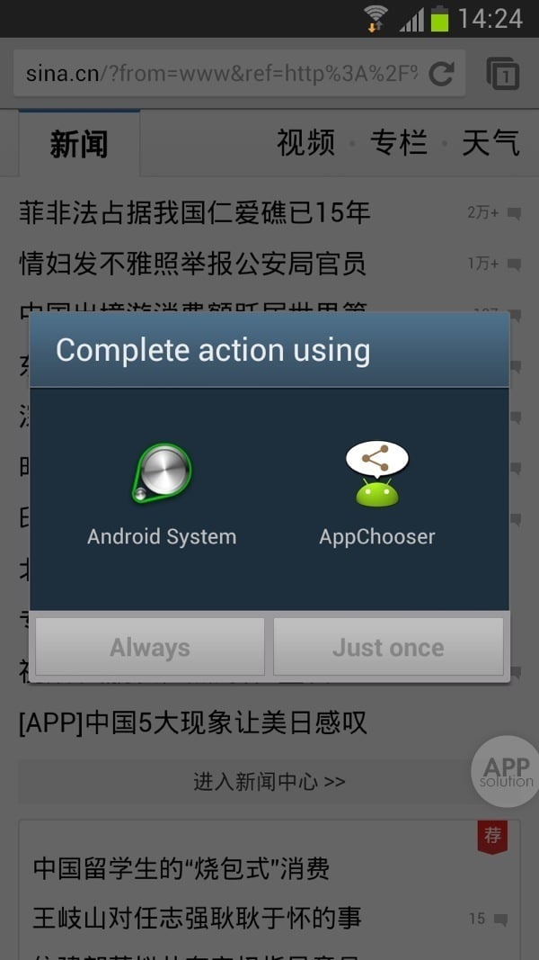 AppChooser 的使用方式非常简便。安装完毕后,下次使用分享功能就会弹出选项,选择使用 AppChooser 还是使用系统自带的分享菜单。