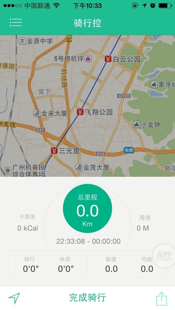 点击下方的自行车按钮即可开始一段骑行,各种参数一应俱全,包括消耗的热量、骑行的极速和均速等。最让人感到惊喜的是,它还能记录海拔的轻微变化。