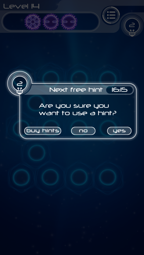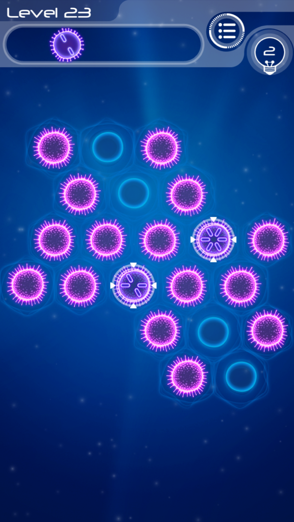 消耗无数珍贵的脑细胞也不知如何摆放,怎么办?试试点击右上角的增殖提示,消耗 Hint 值,获取细胞摆放提示,不费脑力顺利通关。