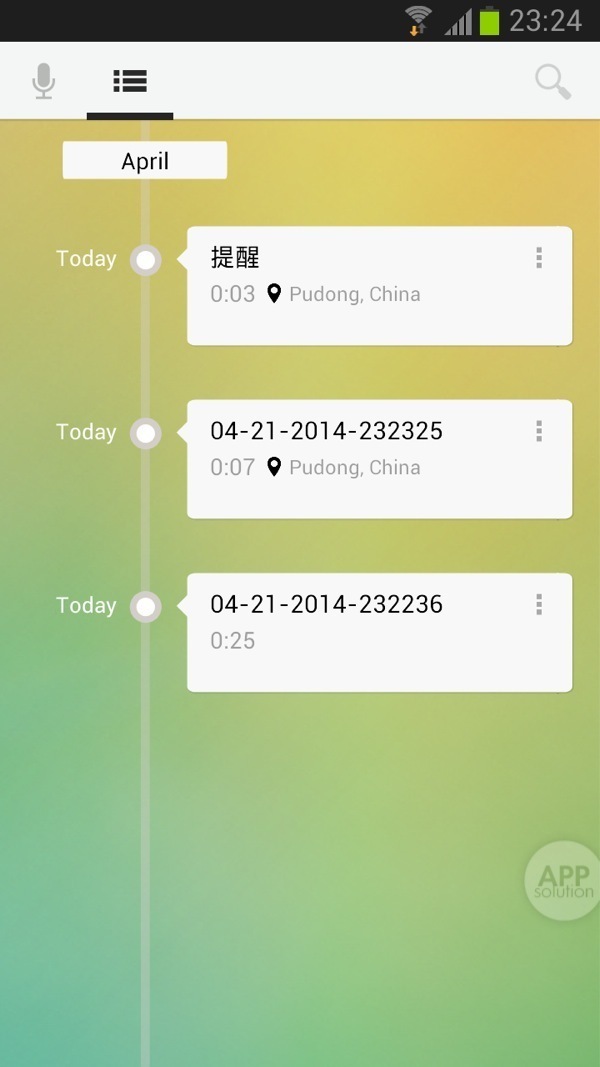 进入浏览页面,清晰的时间线让你的历史录音一目了然,录音的地点也会被记录在案。