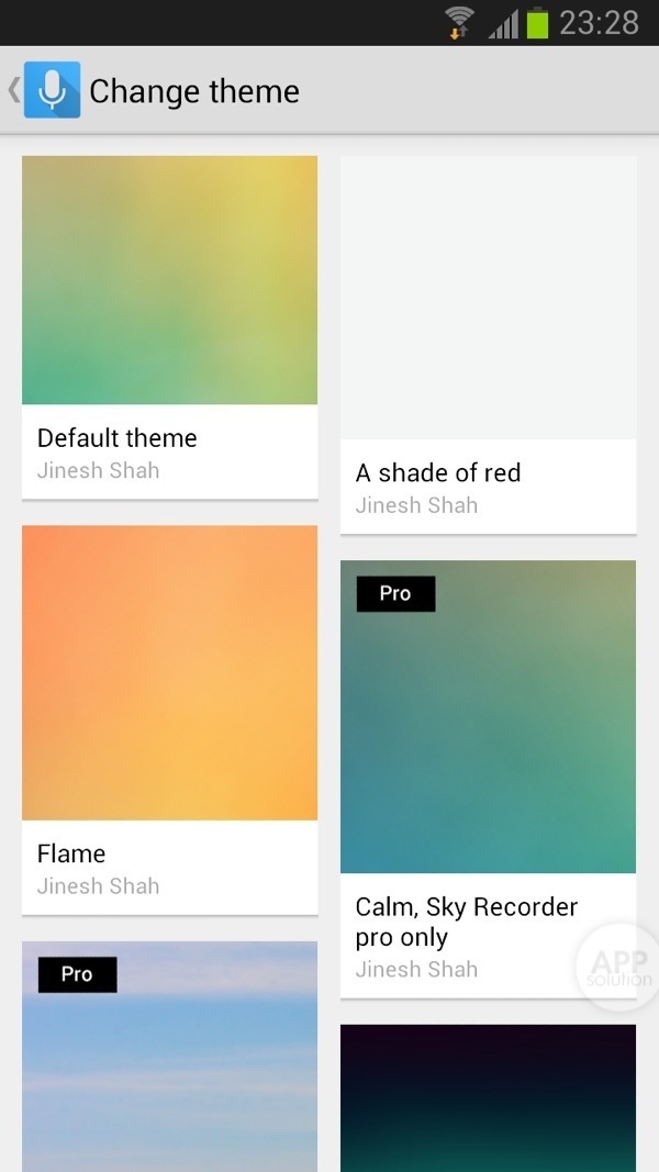 作为一款录音机,它竟然还可以更换主题背景,实属难得。不过,除了免费的主题之外,有几款需要花 0.99 美元购买 Pro 版本才可以下载到。