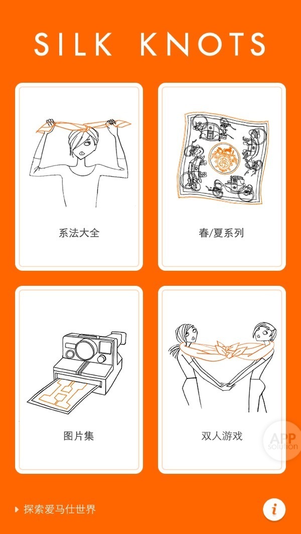 Hermès Silk Knots 适用于 iOS6.0+ 的设备,大小 248 MB;Android 4.0+ 的设备,大小 235 MB,完全免费。