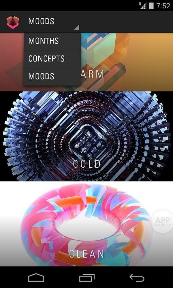打开软件界面,时间轴上的整齐排列的壁纸将在一秒内带给你炫丽的视觉感受。各色壁纸可以根据「月份」、「概念」以及「感官」来分类,扑面而来的艺术气息会让你每一张都「爱不释眼」。