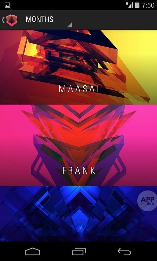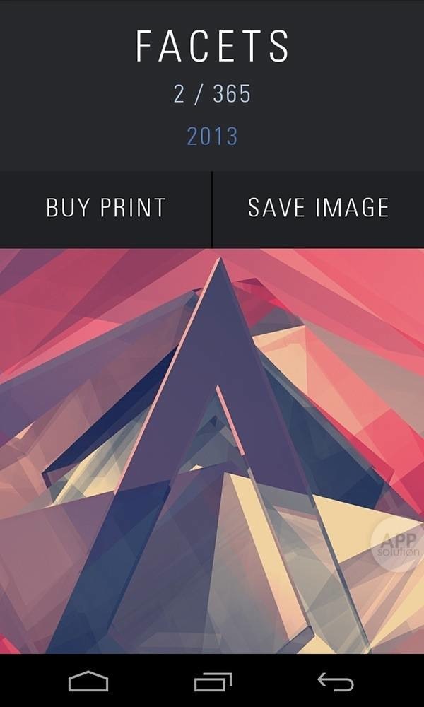 这款 App 的壁纸均出自澳大利亚数字艺术插画家 Justin Maller 之手,丰富的色彩和大胆的几何搭配,使他的作品保留了强烈的个人风格。去年他发起了「One Image Per Day」项目,正是有了他 365 天的努力,我们现在才得以每天感受到不同的视觉冲击。