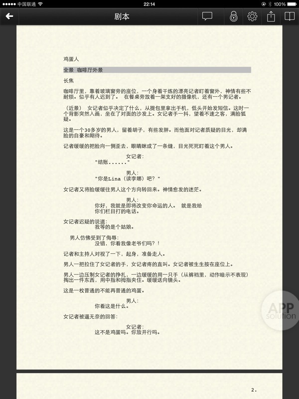 – 文字类软件,比如 Celtx,是专业写剧本的软件。Scripts Pro 和 Fade in 也都是写剧本的软件,但是没 Celtx 用得顺手,于是钱白花了。另外 Continuity 专门用来划文字分镜的。