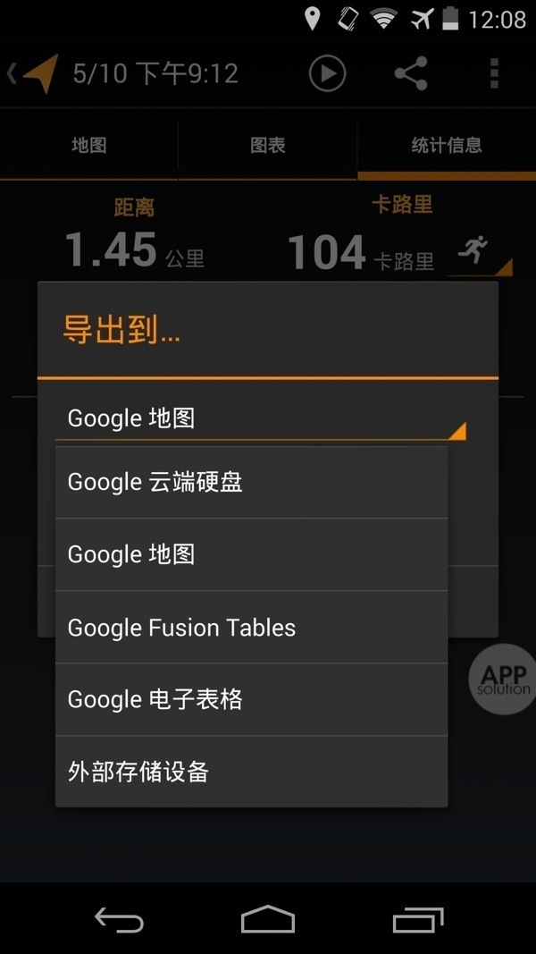 在附加选项中,My Tracks 支持将记录导出到 Google Drive、创建私人 Google 地图路线、甚至汇总成高端的 Google 融合数据表。专业的骑行爱好者可以用到这些功能来详细地分析自己的速度、体能、海拔高度等数据。