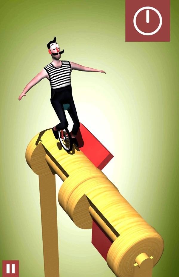 通过不断地点触屏幕,可调整杂耍大叔的骑行方向,让其在一定范围内保持平衡,撑到限定的表演时间,即可过关。