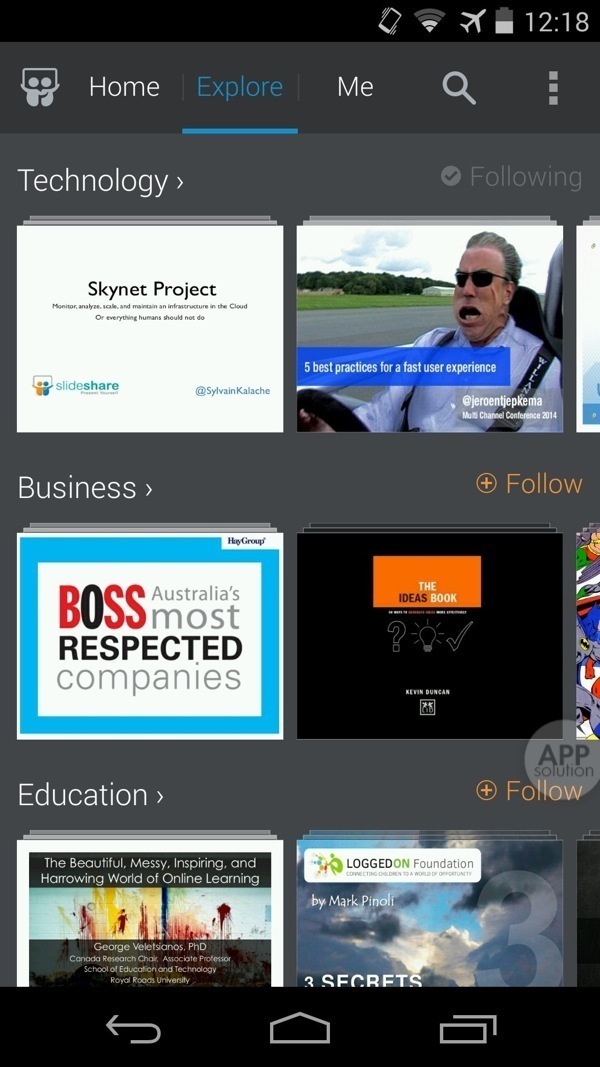 来 SlideShare 看看吧!这个 LinkedIn 旗下的幻灯片分享服务为你提供了数以百万计的灵感,并且通过一个 Android 独享的精美应用,让你把灵感随身带走。