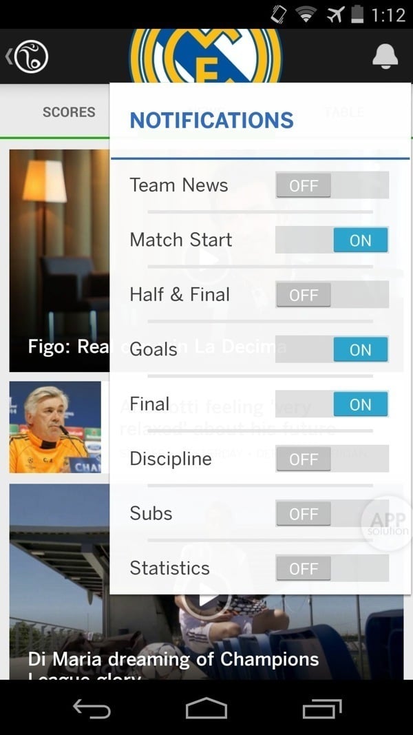 按联赛或杯赛找到你的球队,即可设置球队新闻、开球、半场、进球、全场、吃牌、换人和统计数据等多达八种提醒。ESPN FC 的提醒非常即时,往往电视里还没播到进球,手机就已经提前剧透了……