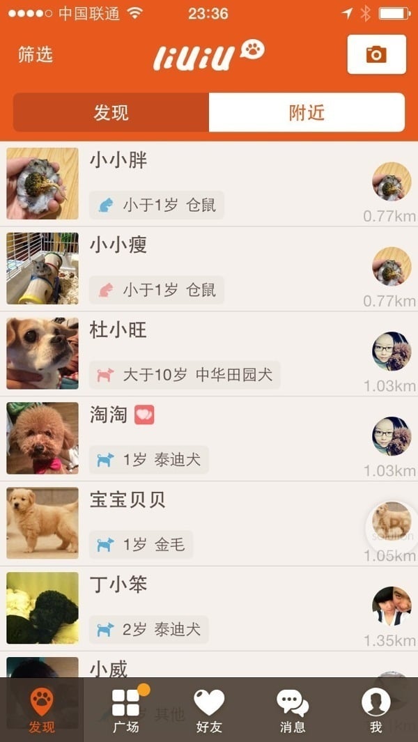 于是,为猫猫狗狗们所喜闻乐见的遛遛上线了。它能够为你家满地乱跑的宠物提供基于地理位置的社交平台 —— 没错,就像陌陌那样。